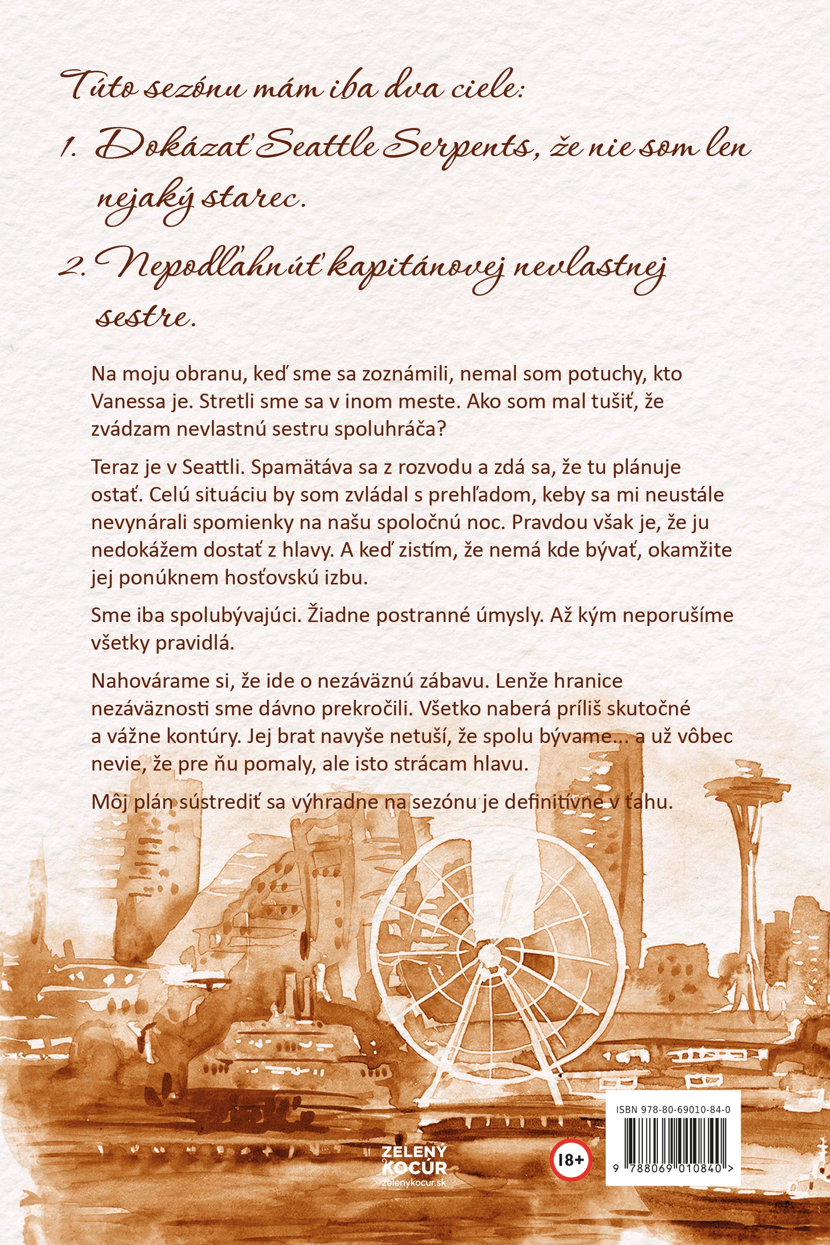 Túto sezónu mám iba dva ciele: 1. Dokázať Seattle Serpents, že nie som len nejaký starec. 2. Nepodľahnúť kapitánovej nevlastnej sestre. Na moju obranu, keď sme sa zoznámili, nemal som potuchy, kto Vanessa je. Stretli sme sa v inom meste. Ako som mal tušiť, že zvádzam nevlastnú sestru spoluhráča? Teraz je v Seattli. Spamätáva sa z rozvodu a zdá sa, že tu plánuje ostať. Celú situáciu by som zvládal s prehľadom, keby sa mi neustále nevynárali spomienky na našu spoločnú noc. Pravdou však je, že ju nedokážem dostať z hlavy. A keď zistím, že nemá kde bývať, okamžite jej ponúknem hosťovskú izbu. Sme iba spolubývajúci. Žiadne postranné úmysly. Až kým...