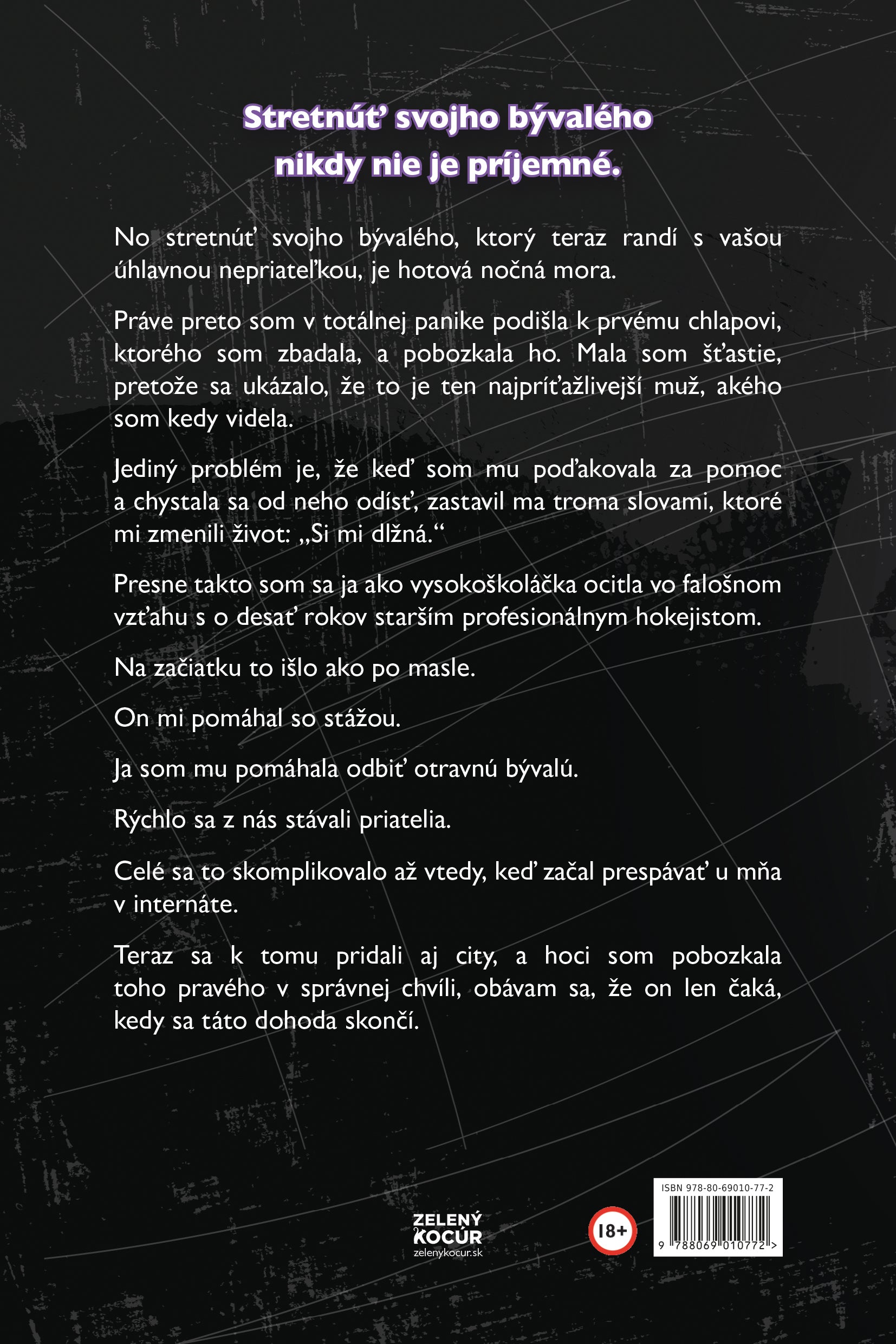 Stretnúť svojho bývalého nikdy nie je príjemné. No stretnúť svojho bývalého, ktorý teraz randí s vašou úhlavnou nepriateľkou, je hotová nočná mora. Práve preto som v totálnej panike podišla k prvému chlapovi, ktorého som zbadala, a pobozkala ho. Mala som šťastie, pretože sa ukázalo, že to je ten najpríťažlivejší muž, akého som kedy videla. Jediný problém je, že keď som mu poďakovala za pomoc a chystala sa od neho odísť, zastavil ma troma slovami, ktoré mi zmenili život: „Si mi dlžná.“ Presne takto som sa ja ako vysokoškoláčka ocitla vo falošnom vzťahu s o desať rokov starším profesionálnym hokejistom. Na začiatku to išlo ako po masle. On mi pomáhal so...