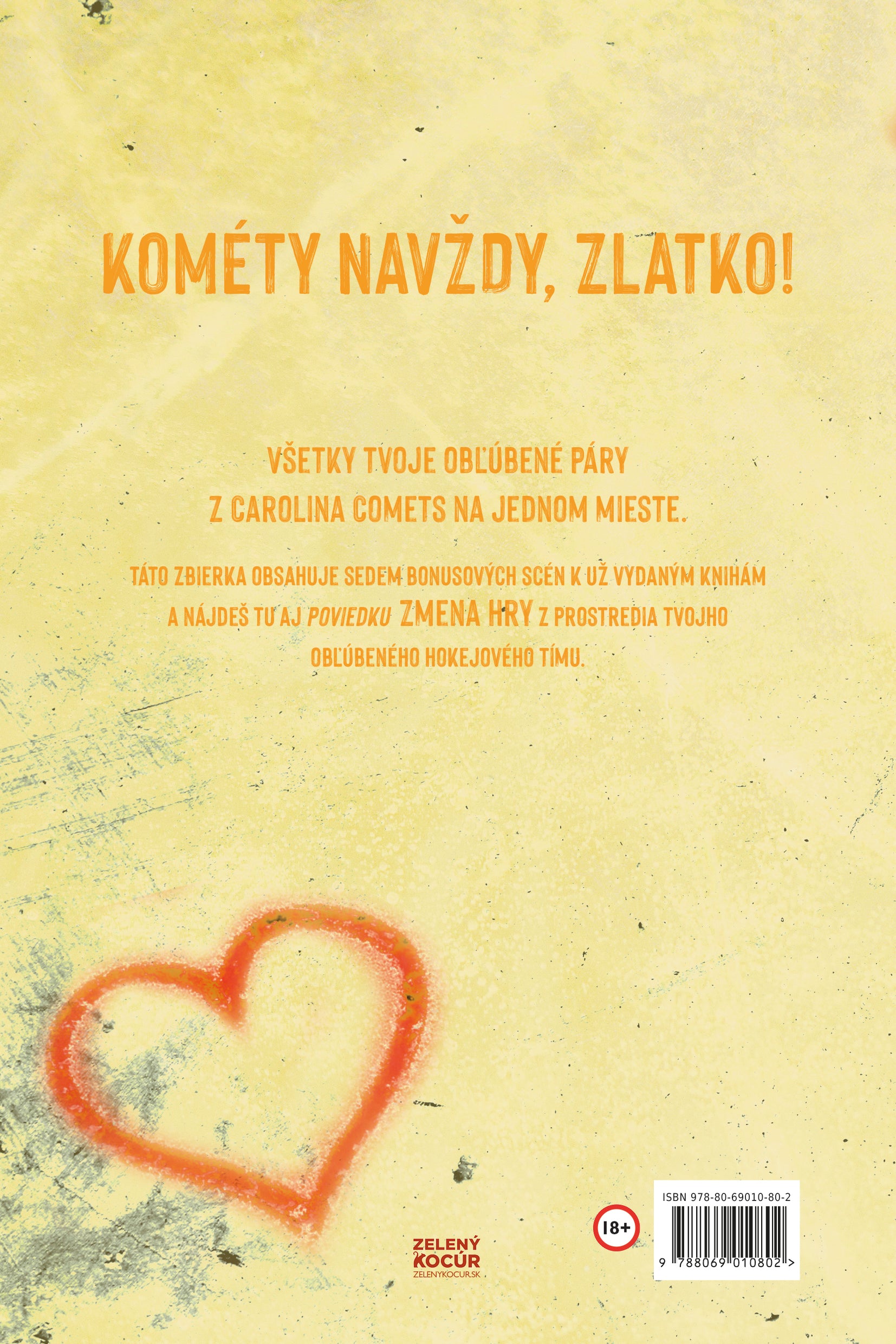 KOMÉTY NAVŽDY, ZLATKO! Všetky tvoje obľúbené páry z Carolina Comets na jednom mieste. Táto zbierka obsahuje sedem bonusových scén k už vydaným knihám a nájdeš tu aj poviedku Zmena hry z prostredia tvojho obľúbeného hokejového tímu. O autorke TEAGAN HUNTER je dizajnérka tituliek na voľnej nohe. V akejkoľvek voľnej chvíli je spisovateľka. Vyrastala v Missouri, no momentálne žije v Severnej Karolíne so svojím manželom, bývalým americkým námorníkom. Celé dni ho prosí, aby si zadovážili mačku. Žije z kávy, pizze a sarkazmu. Keď nepíše, nájdete ju pred televízorom donekonečna sledovať seriály Supernatural a One Tree Hill. Obľubuje chladné počasie, kupuje si viac paperbackov, než stihne do konca života prečítať, a...