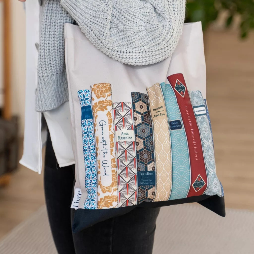 Ak milujete knihy, túto tašku si zamilujete tiež. Vzor pripomínajúci poličku s klasickými dielami, ktoré na taške priam ožívajú. Taška je odolná a dobre sa nosí, ozvláštni akýkoľvek outfit – vysnívaná taška pre všetkých milovníkov a milovníčky kníh! Taška je vyrobená pomocou digitálnej potlače textilu, z vodoodpudivého materiálu, takže sa ľahko čistí, vďaka čomu je ideálna na nákupy, návštevu knižnice alebo na každodenné používanie. Podrobnosti: Rozmery: 36x41 cm Materiál tašky: vodoodpudivý Ucho: dlhé Nosnosť: 10 – 15 kg