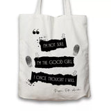 Štýlová plátená taška inšpirovaná knihou Holly Jackson "Ako nájsť vraha: Príručka pre dobré dievčatá", na ktorej je ikonický citát: "I'm not sure I'm the good girl I once thought I was."